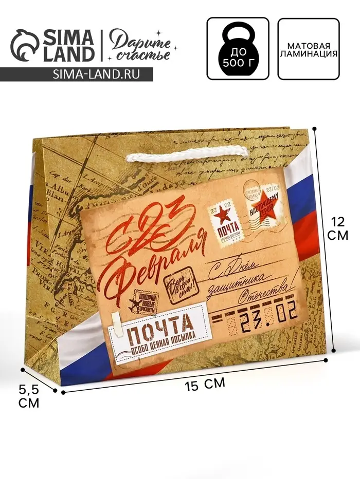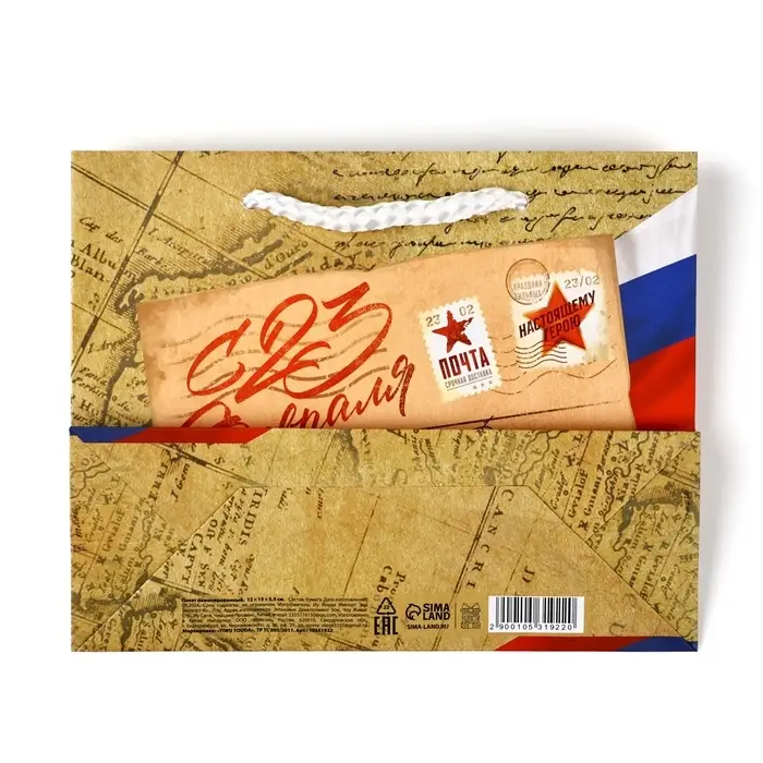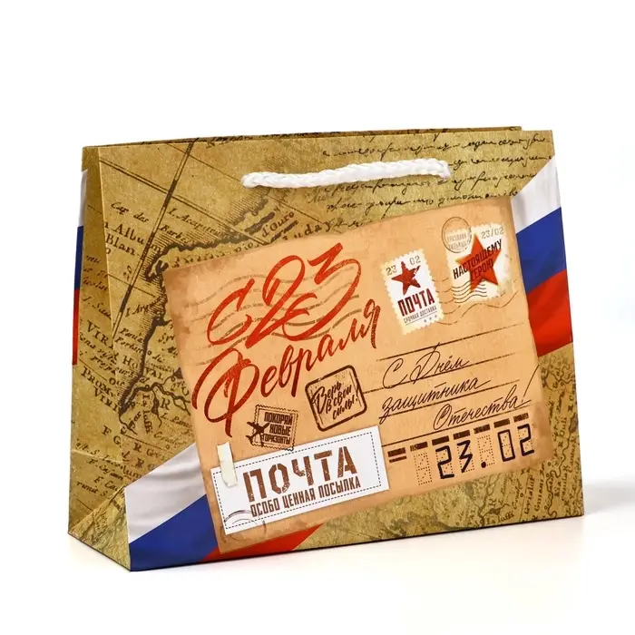 Пакет подарочный ламинированный «С 23 февраля», S 12 х 15 х 5.5 см