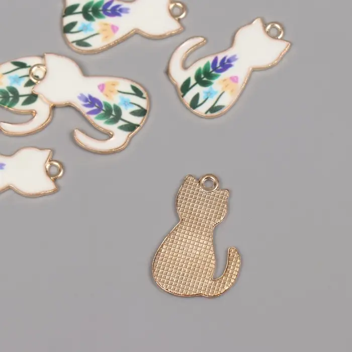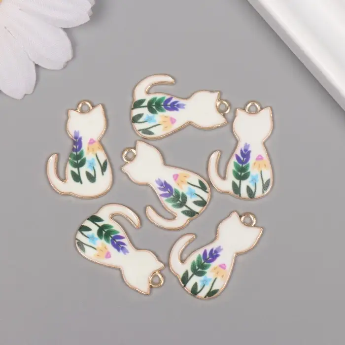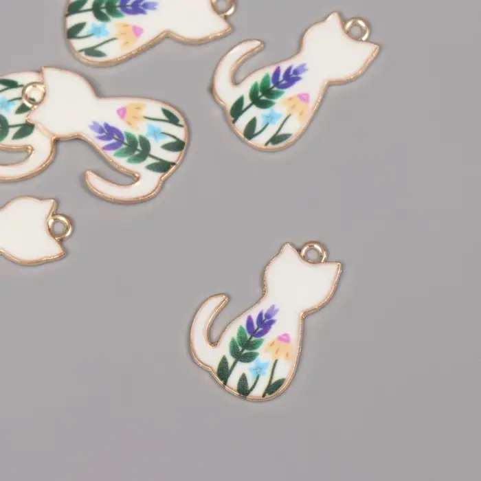 Декор для творчества металл, эмаль "Белый котик с цветами" 2,5х1,6 см