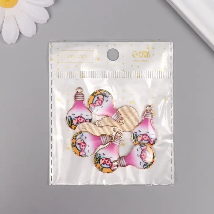 Декор для творчества металл, эмаль "Рыба в лампочке" 2,8х1,6 см