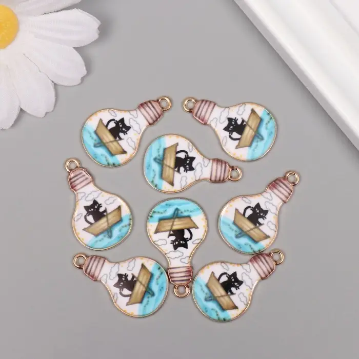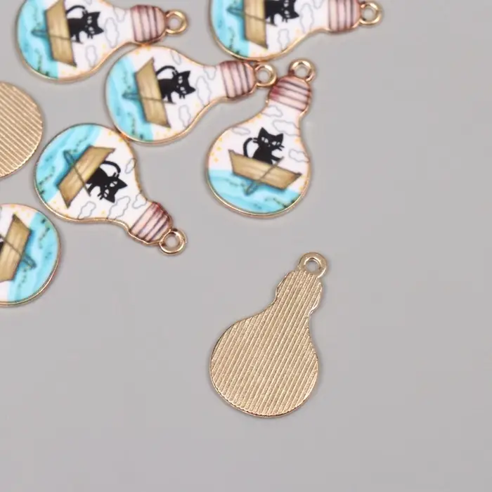 Декор для творчества металл, эмаль "Кот на лодке в лампочке" 2,8х1,6 см