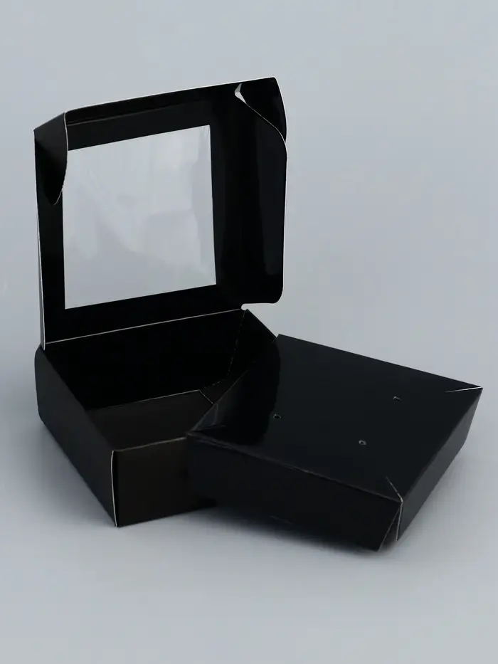 Коробка для бижутерии с PVC окном (черного цвета) 8x8x3 см