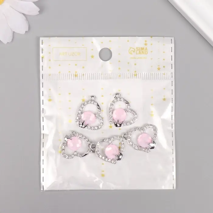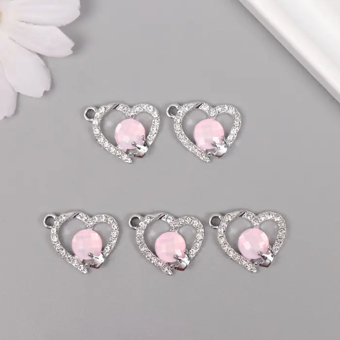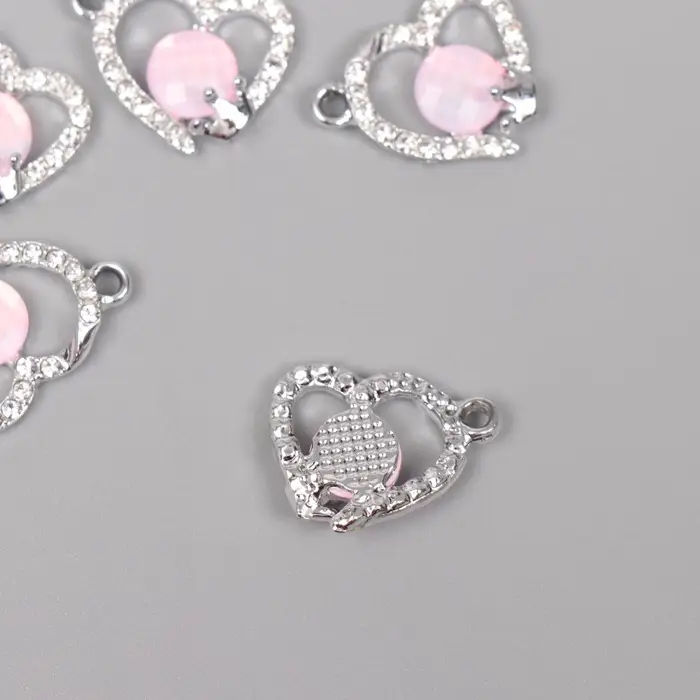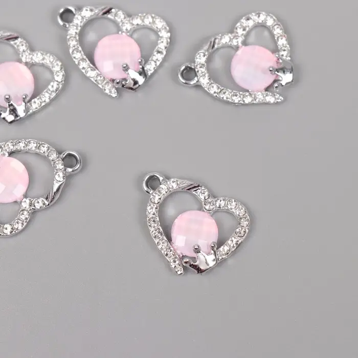 Декор для творчества металл, стразы "Сердечко с короной" серебро, сиреневый 2,1х1,6х0,6 см 1070844