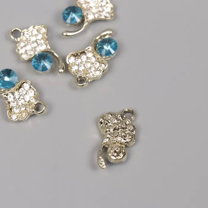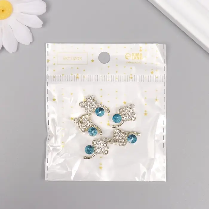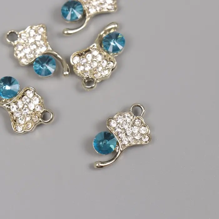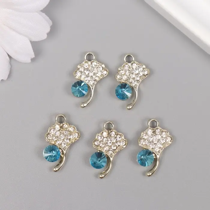 Декор для творчества металл, стразы "Листок с росой" золото, голубой 2,1х1,3х0,5 см
