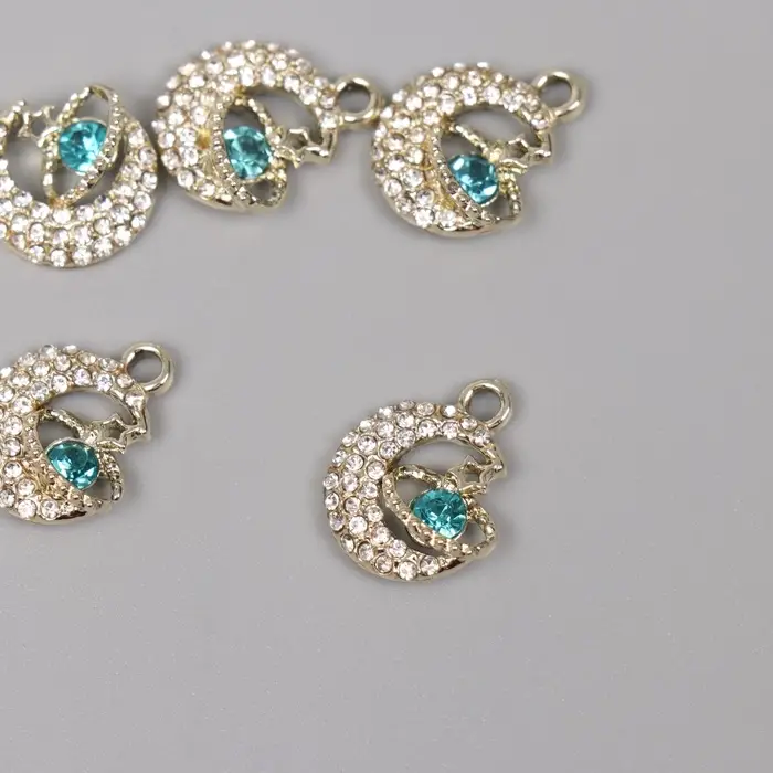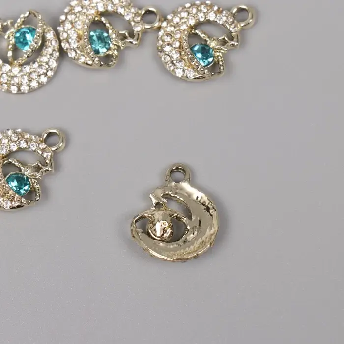 Декор для творчества металл, стразы "Космический месяц" золото 1,8х1,4х0,5 см