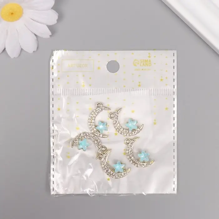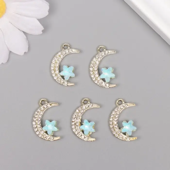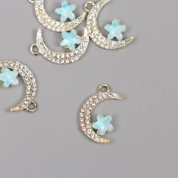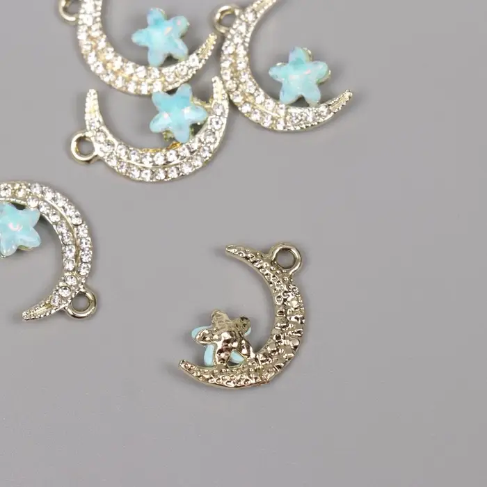 Декор для творчества металл, стразы "Месяц с звездой" золото 2,3х1,4х0,5 см