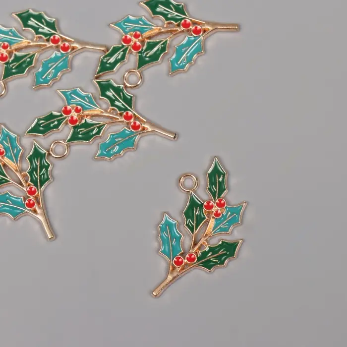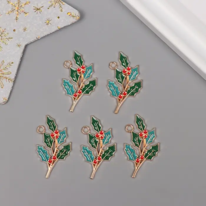 Декор для творчества металл, эмаль "Ветка рябины" 3,3х1,9 см