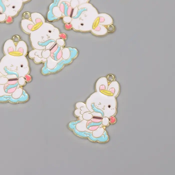 Декор для творчества металл, эмаль "Зайчик-купидон" 2,7х1,7 см