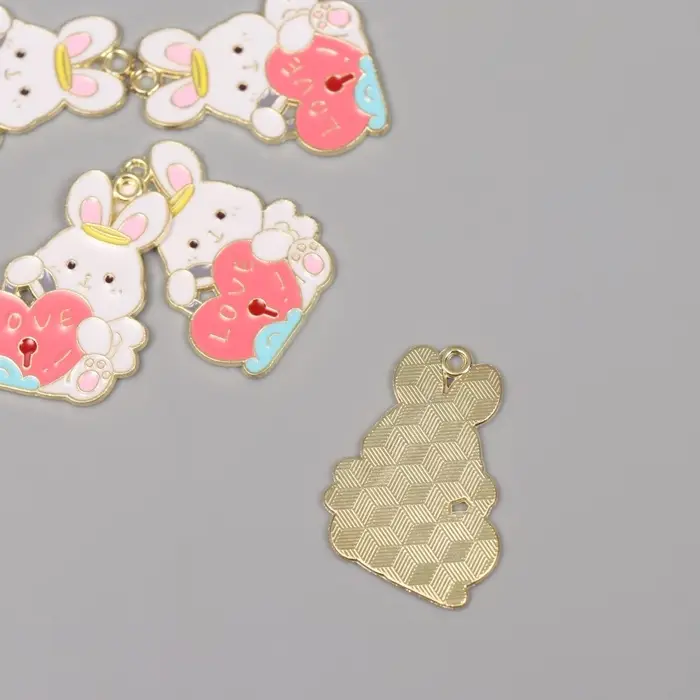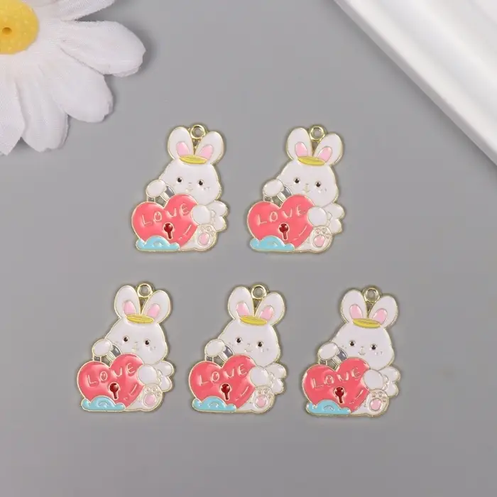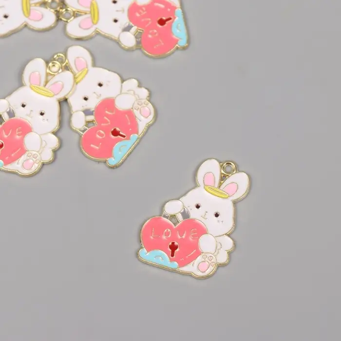 Декор для творчества металл, эмаль "Зайчик с сердцем-замком" 2,8х2,2 см