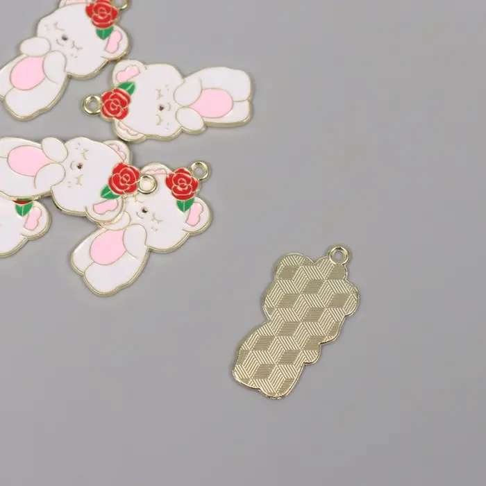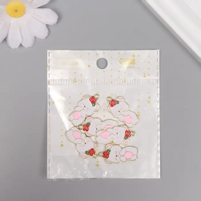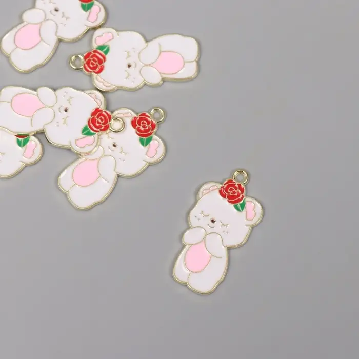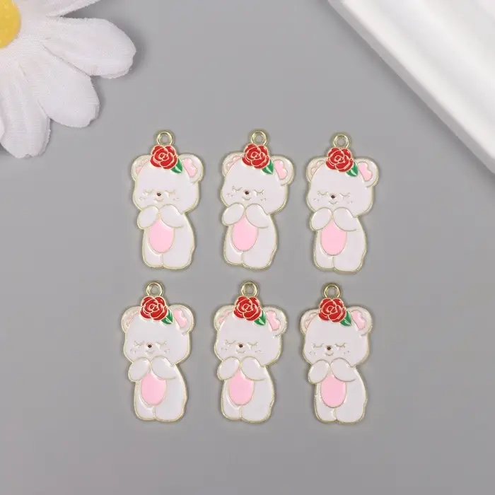 Декор для творчества металл, эмаль "Мишка с цветочком" 2,8х1,5 см