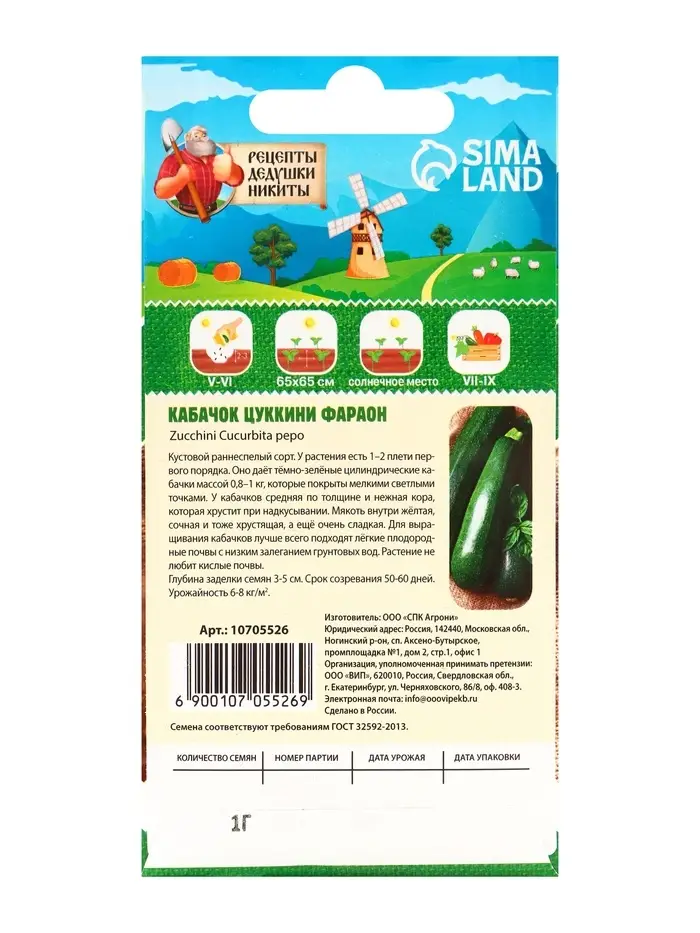Описание семян кабачка цуккини "Фарао"