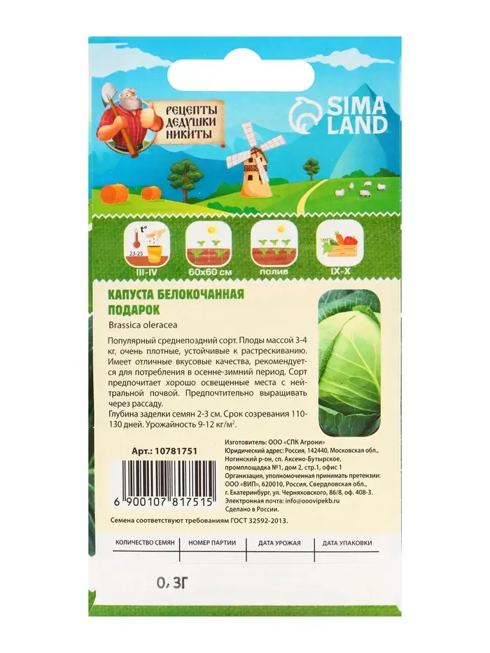 Описание семян капусты белокочанной "Подарок"