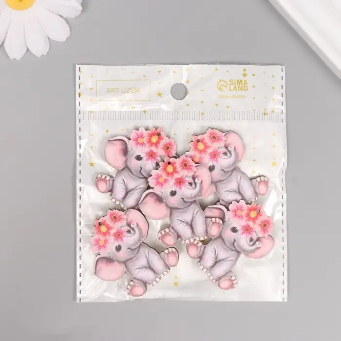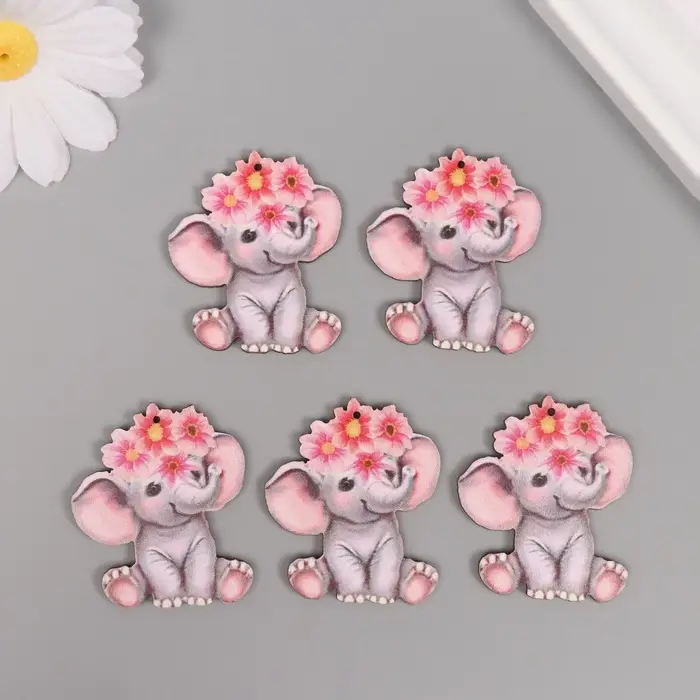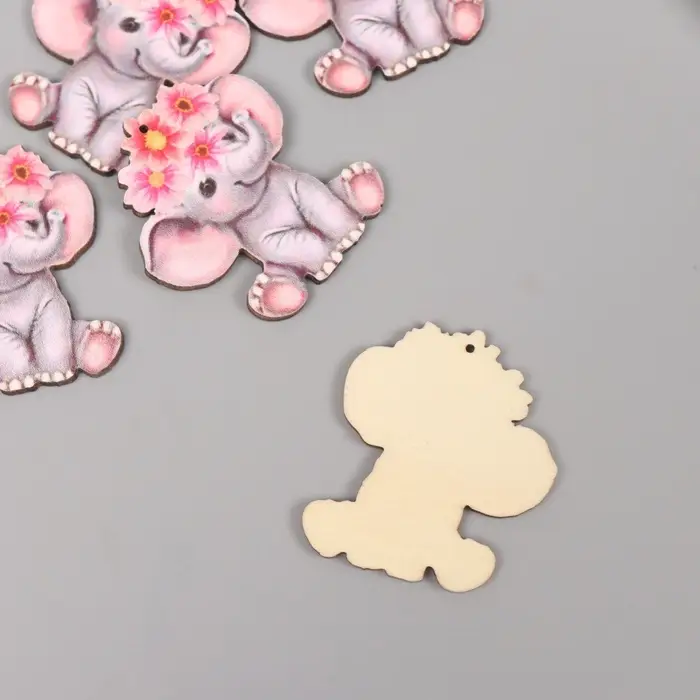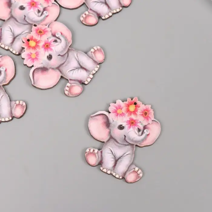 Декор для творчества дерево "Слонёнок с цветным венком" 4,1х3,5х0,3 см