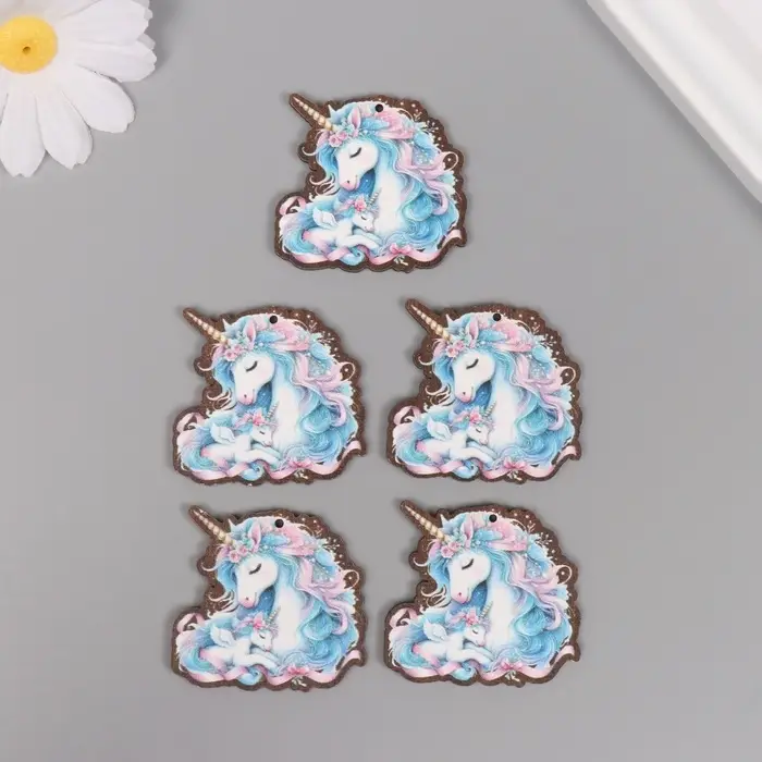 Декор для творчества дерево "Семья единорогов" 4х4,2х0,3 см