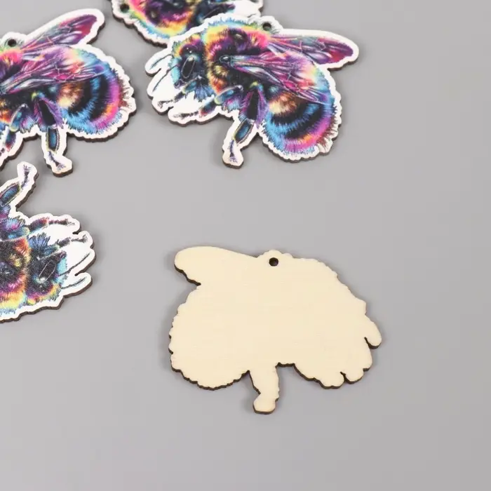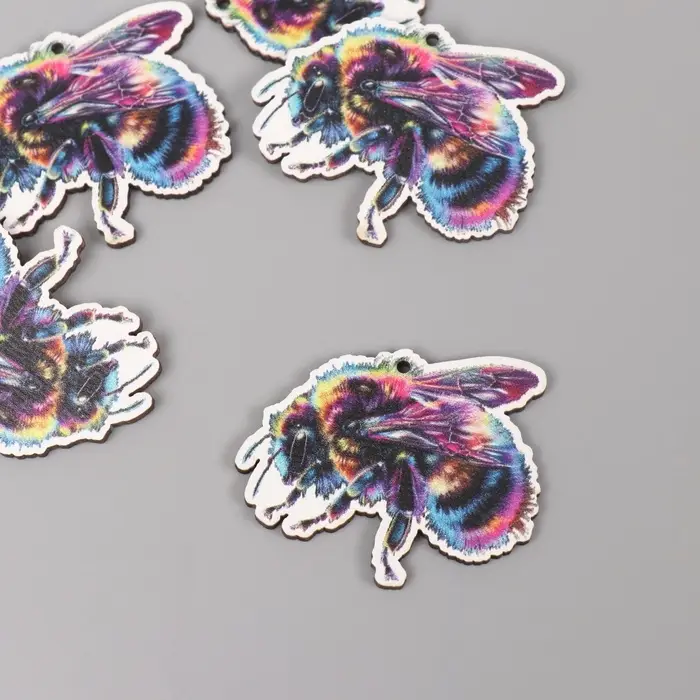 Декор для творчества дерево "Цветная пчела" 3,3х3,9х0,3 см