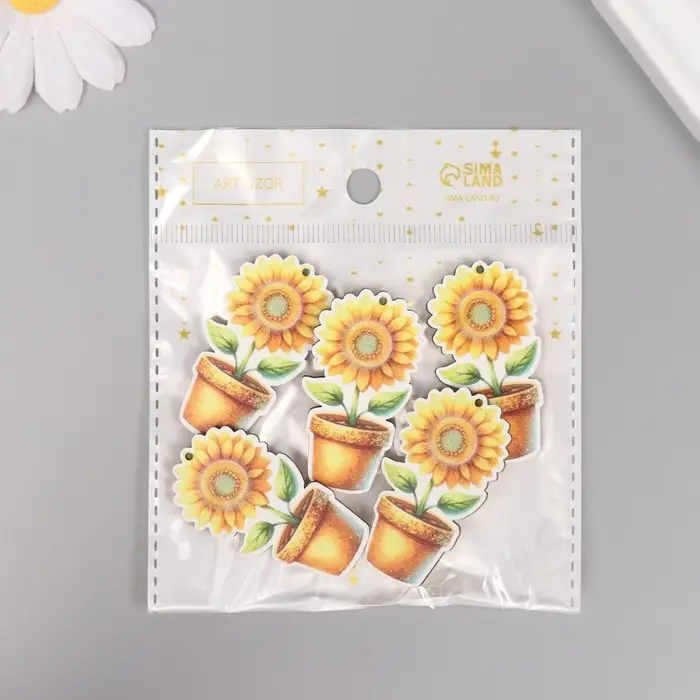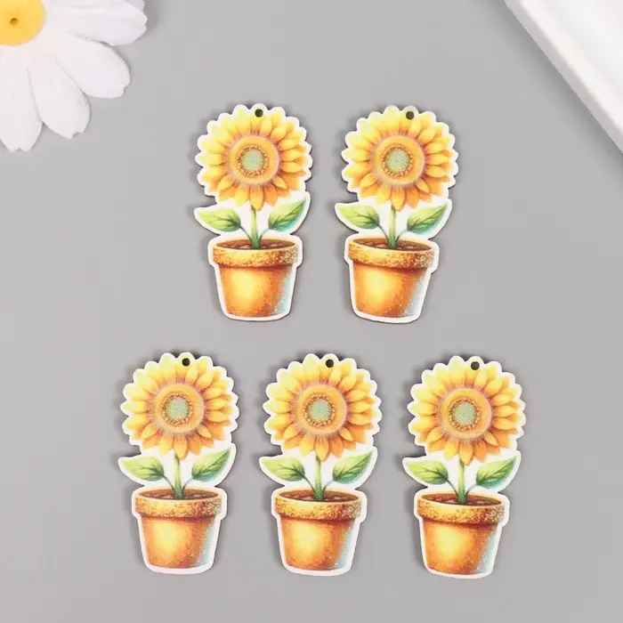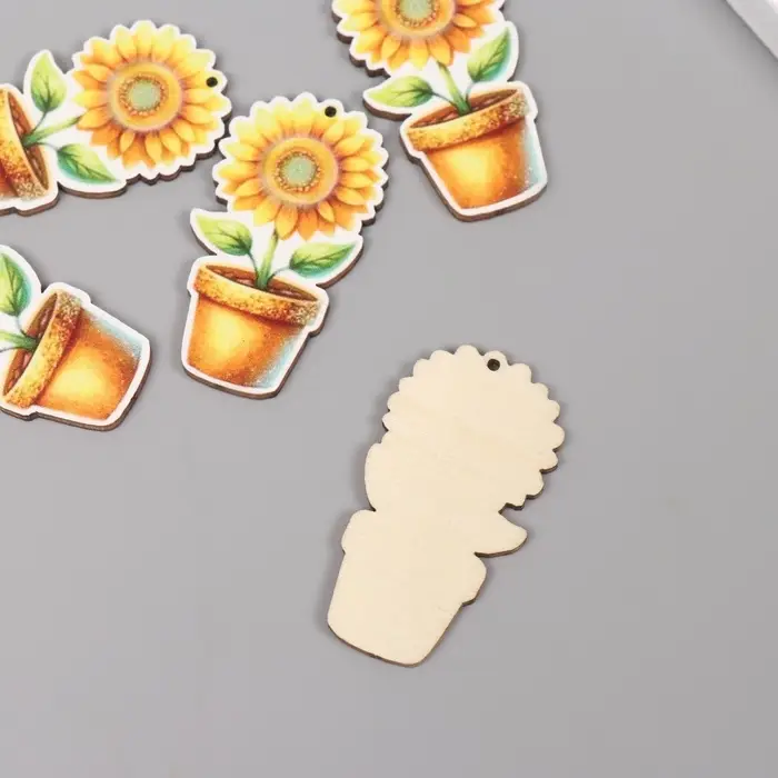 Декор для творчества дерево "Подсолнух в горшке" 4,6х2,5х0,3 см