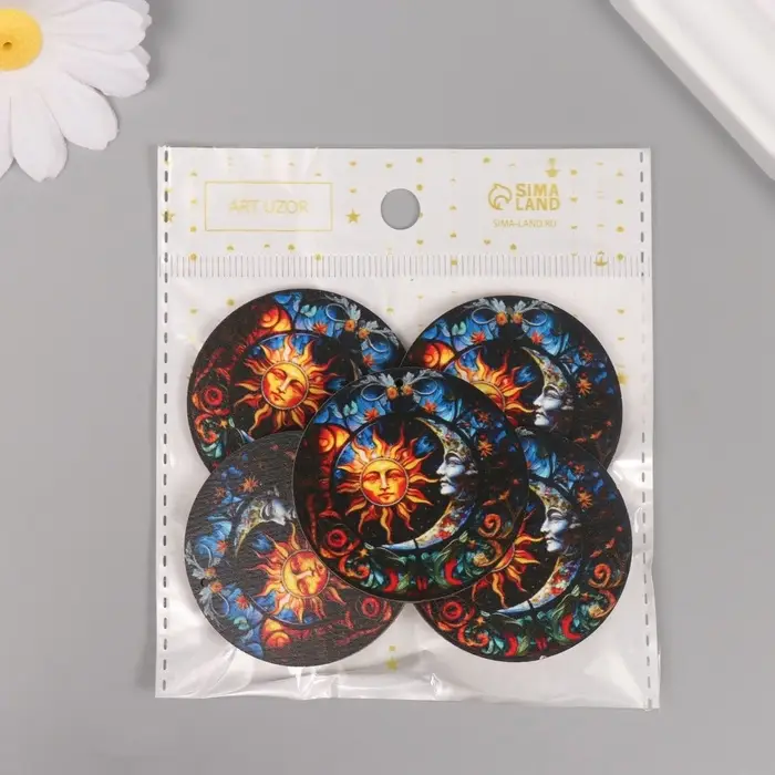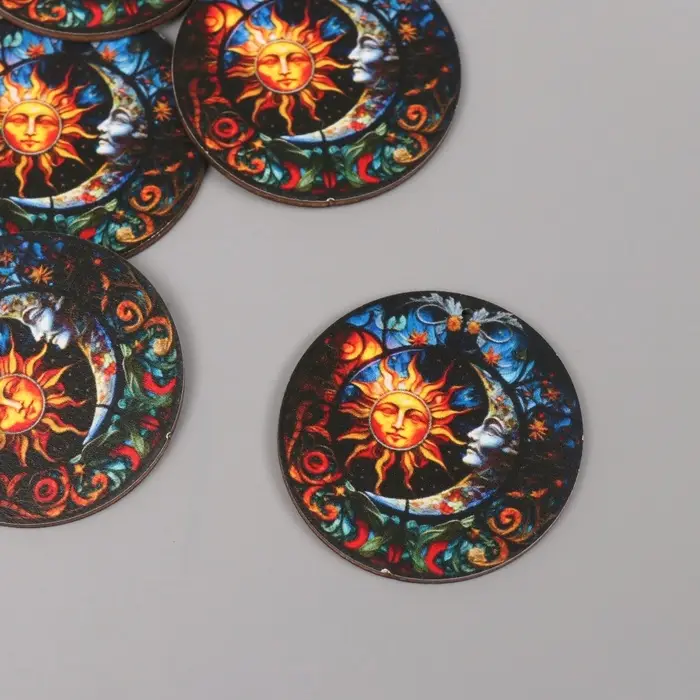 Декор для творчества дерево "Месяц и солнце" 4,6х4,6х0,3 см