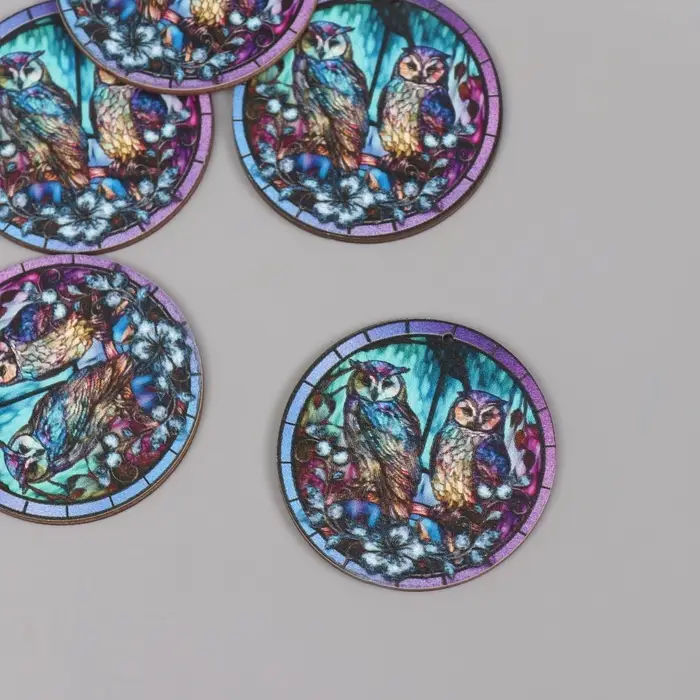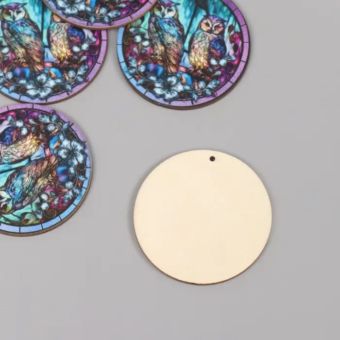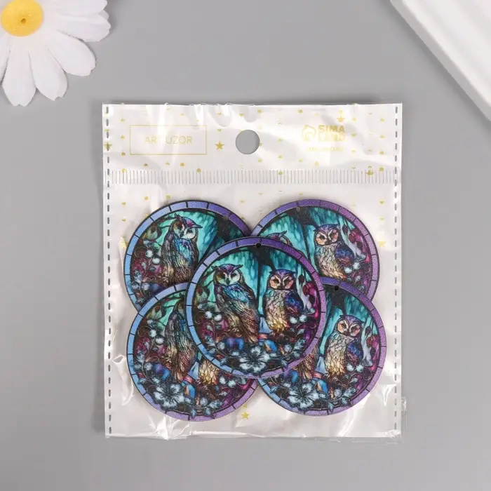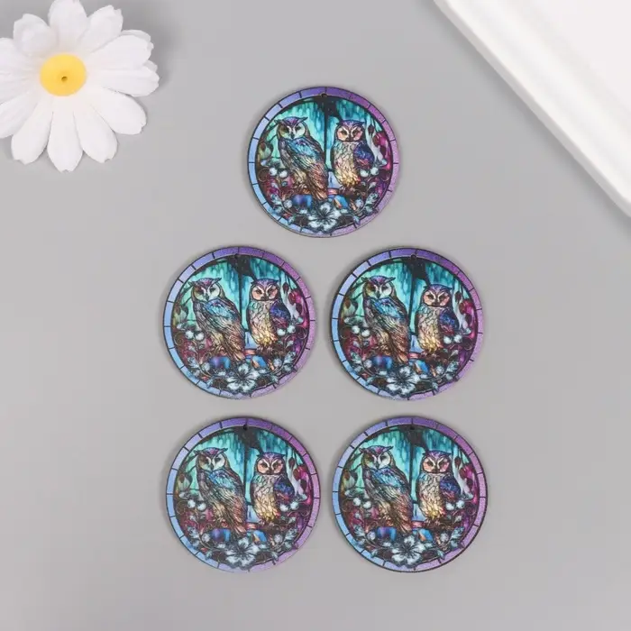 Декор для творчества дерево "Две совы в ночном лесу" 4,6х4,6х0,3 см