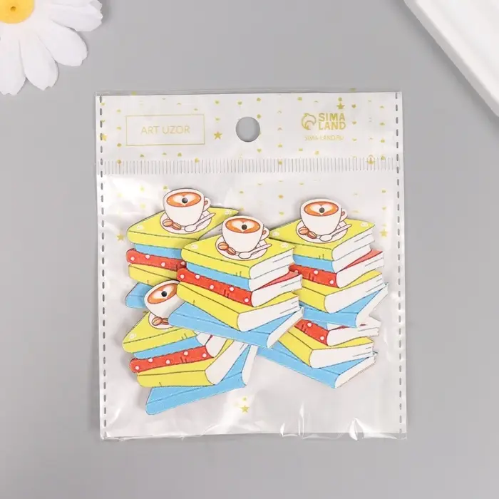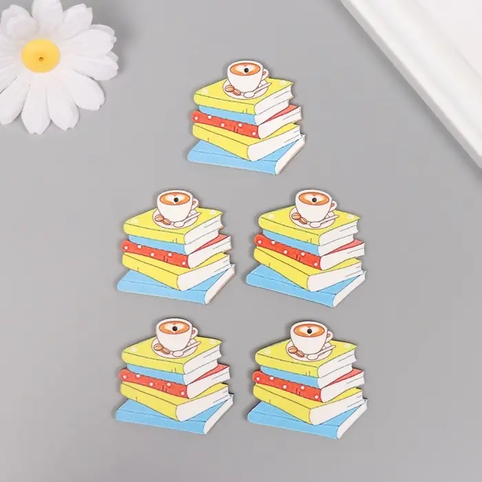 Декор для творчества дерево "Стопка книг и чашка кофе" 4х4,3х0,3 см