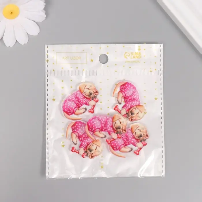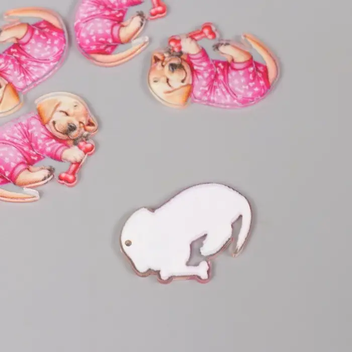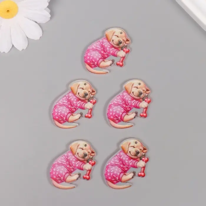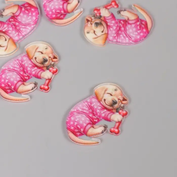 Декор для творчества акрил "Щеночек в пижамке сладко спит с косточкой" 2,5х3,4х0,2 см
