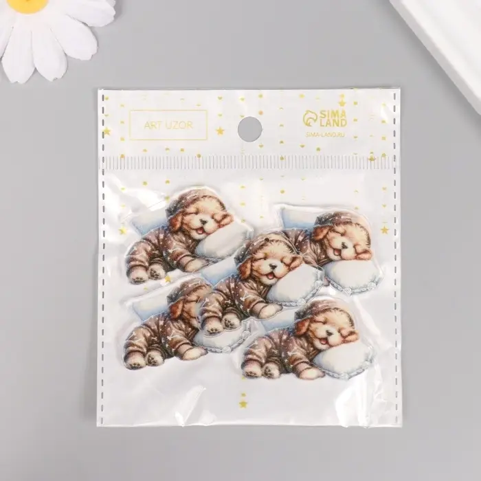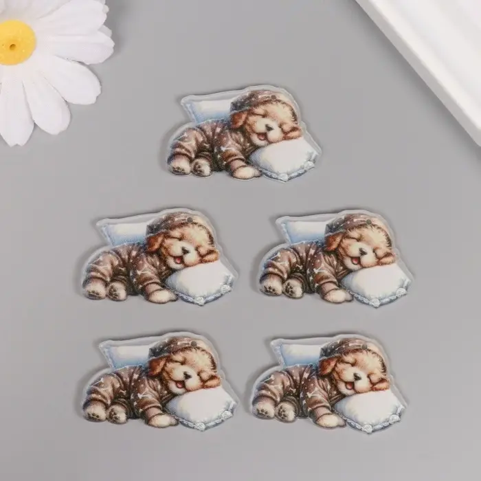 Декор для творчества акрил "Щеночек в пижамке сладко спит на подушке" 2,5х4,5х0,2 см