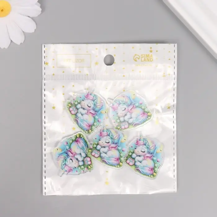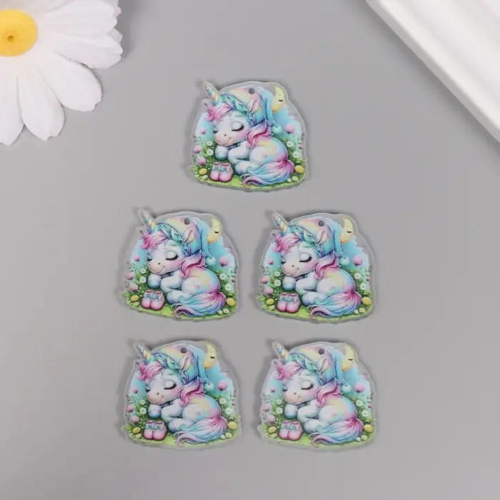 Декор для творчества акрил "Единорожка в косынке сладко спит на лужайке" 2,9х3х0,2 см