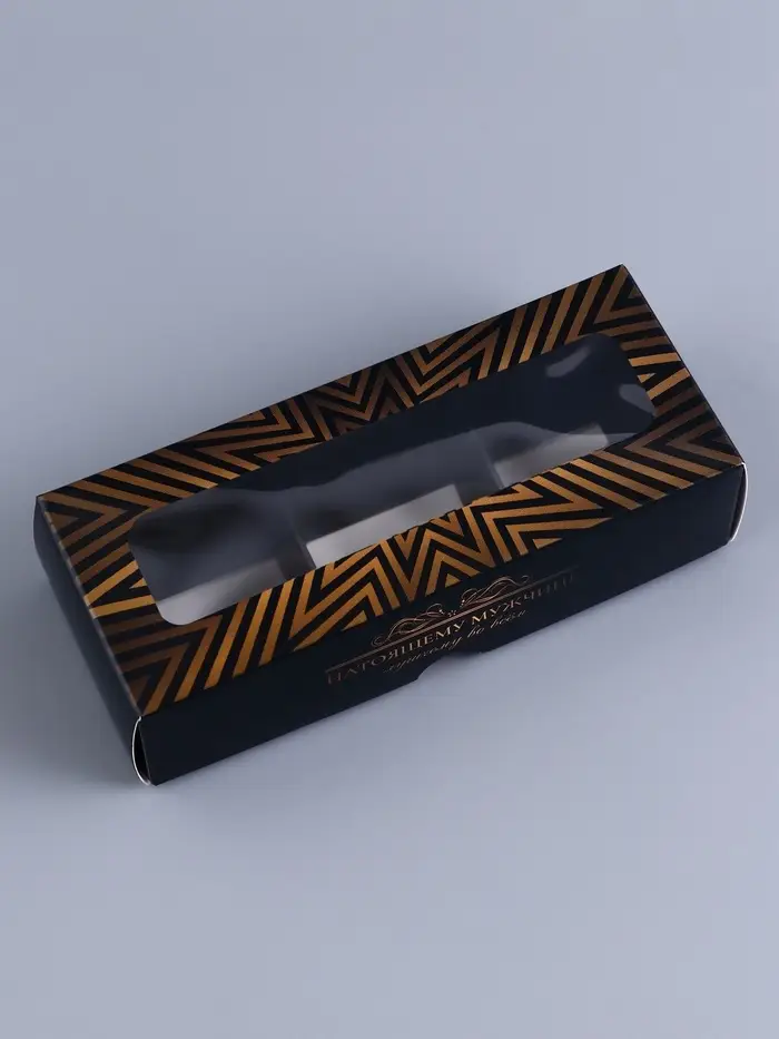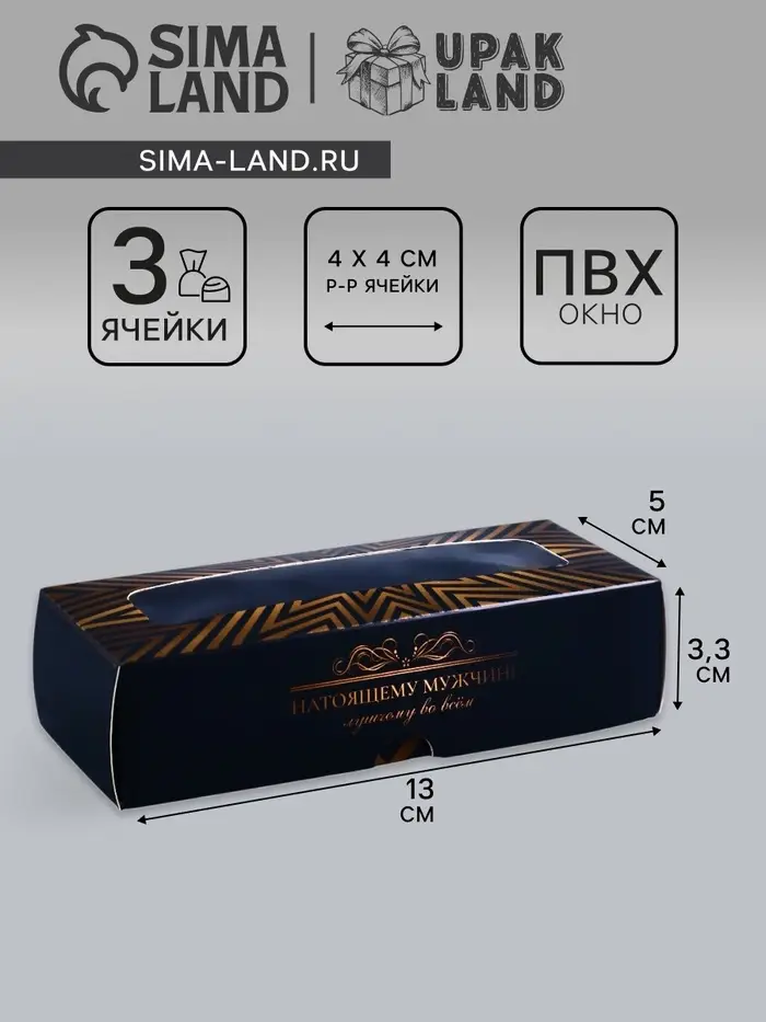 Коробка с обечайкой для 3 конфет, с окном «Натоящему мужчине», 13×5×3.3 см