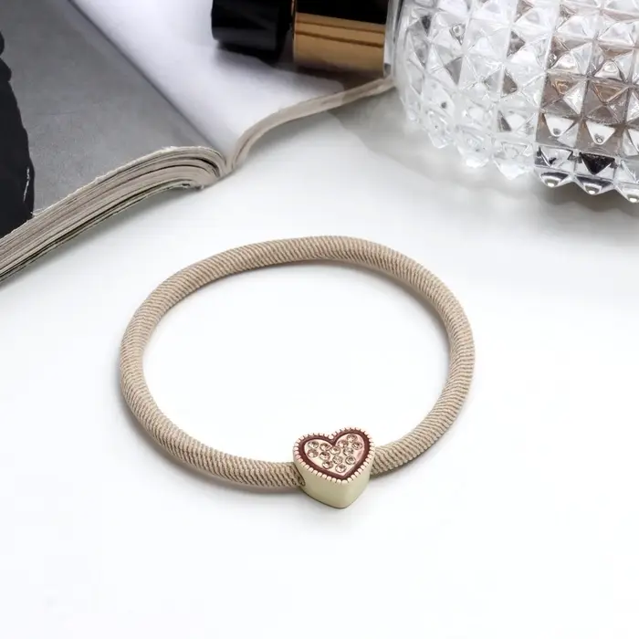 Резинка для волос «Алеста блеск», сердце, 5 см, бежевый