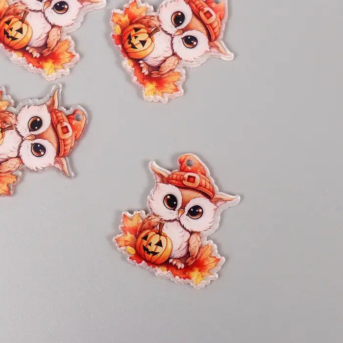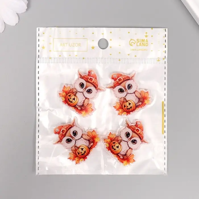 Декор для творчества акрил "Совёнок в шапочке с тыквой" 2,4х2,9х0,2 см