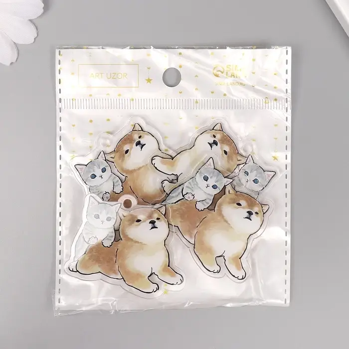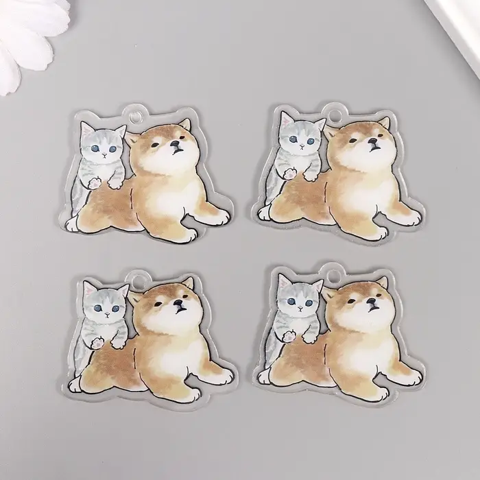 Декор для творчества акрил двусторонний "Собачка с котёнком" 4х5х0,4 см