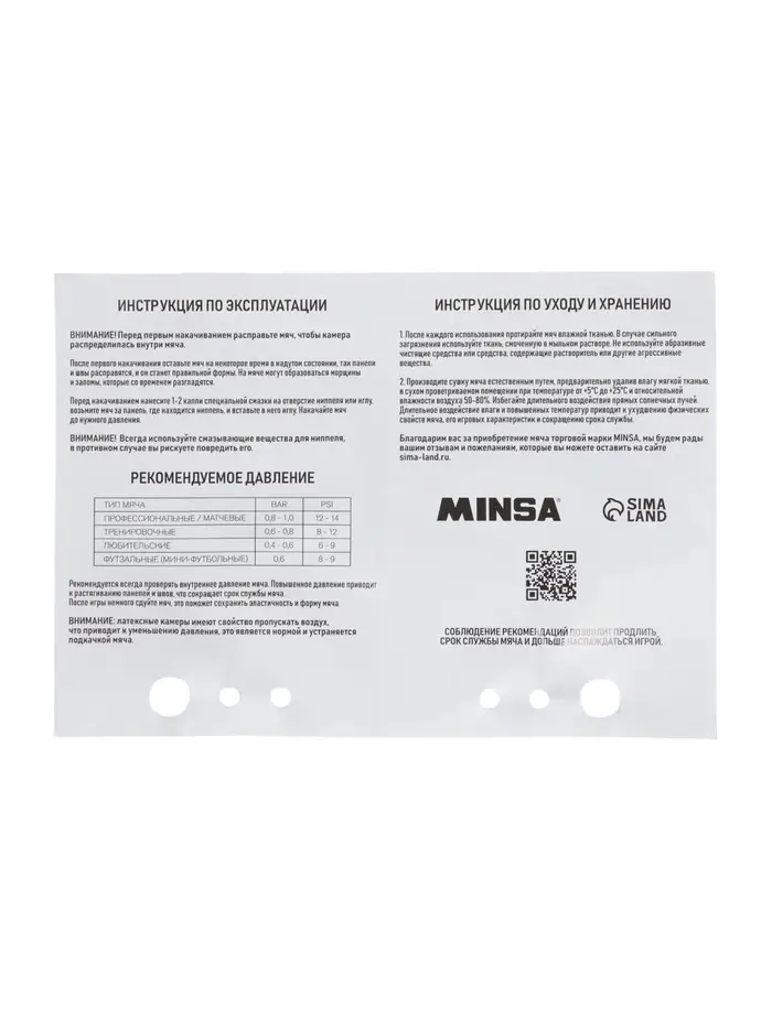 Набор инструкция для футбольных мячей + иголка в zip-lock пакете (плотность ~80 мкм)