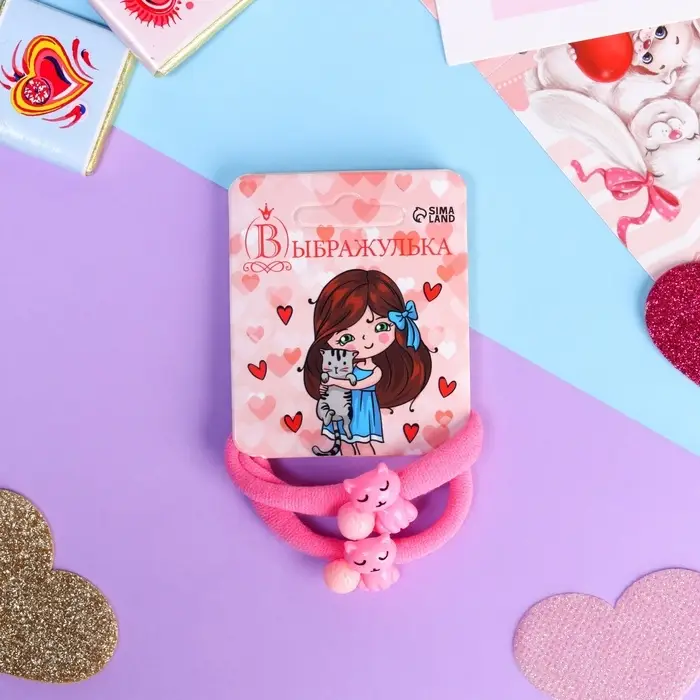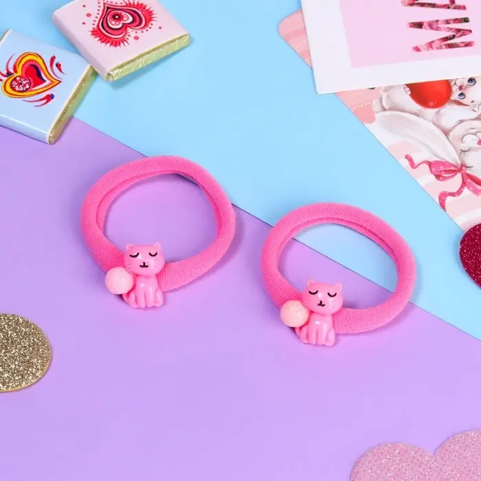 Резинки для волос «Маленькая радость», набор 2 шт., котик, 3.5 см, розовые
