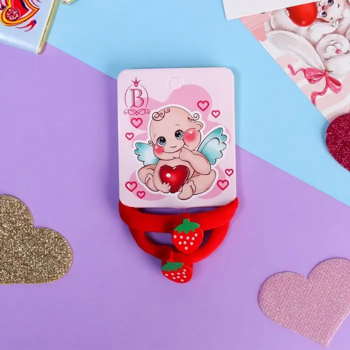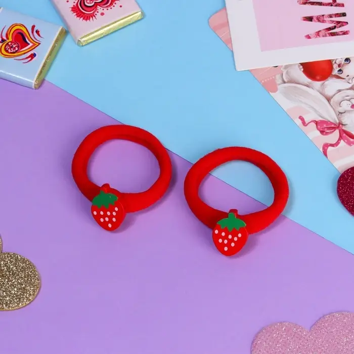 Резинки для волос «Пупсёнок», набор 2 шт., клубничка, 3.5 см, красные