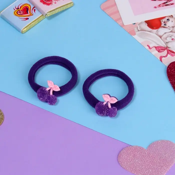 Резинки для волос «Фея», набор 2 шт., вишенки, 3.5 см, фиолетовые