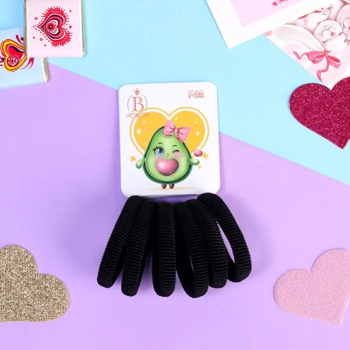 Резинки для волос «Авокадо лав», набор 6 шт., бантик, 4 см, чёрные