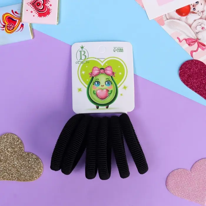 Резинки для волос «Авокадо лав», набор 6 шт., бантик сердце, 4 см, чёрные