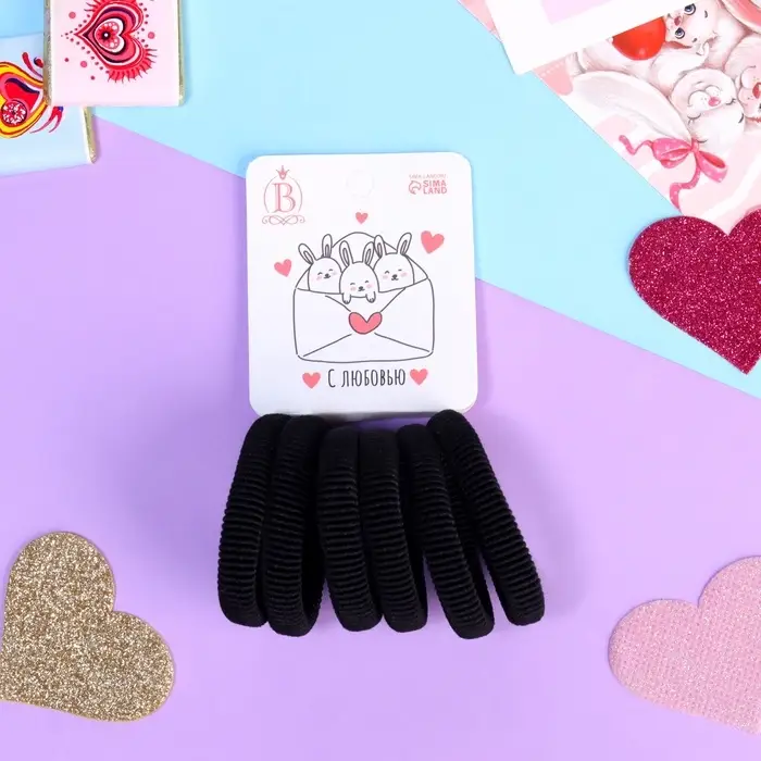 Резинки для волос «Заюшка», набор 6 шт., письмо с любовью, 4 см, чёрные