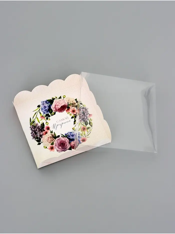 Коробка для печенья, кондитерская упаковка с PVC крышкой, «8 марта», 21 х 21 х 3 см