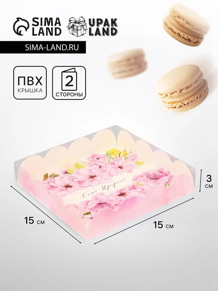 Прочный картон обеспечивает надежную защиту содержимого, а прозрачная крышка позволяет сразу оценить внешний вид угощений без необходимости открывать коробку.