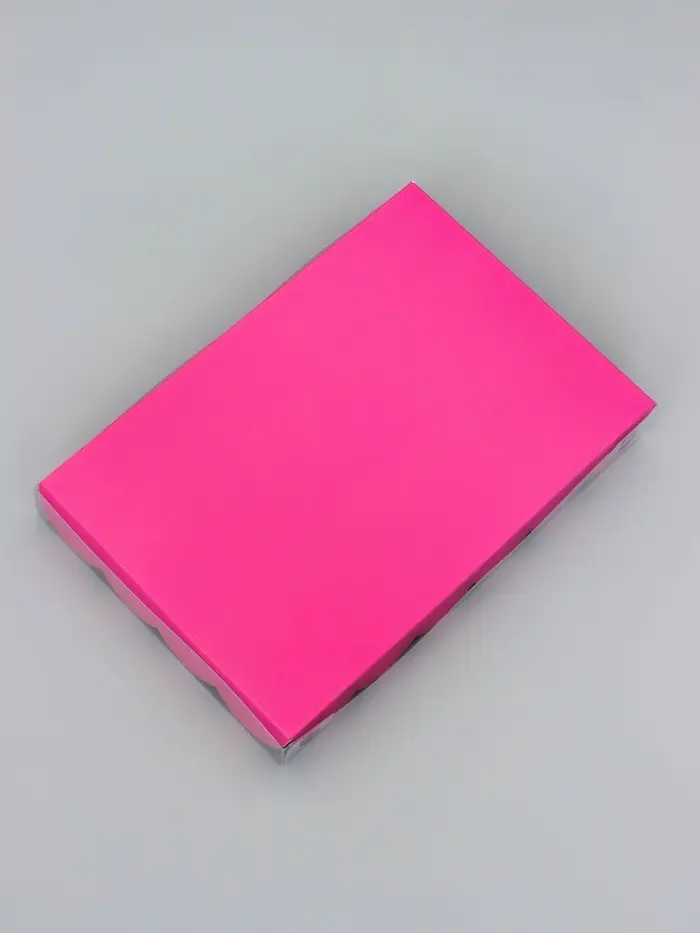 Прочный картон обеспечивает надежную защиту содержимого, а прозрачная крышка позволяет сразу оценить внешний вид угощений без необходимости открывать коробку.