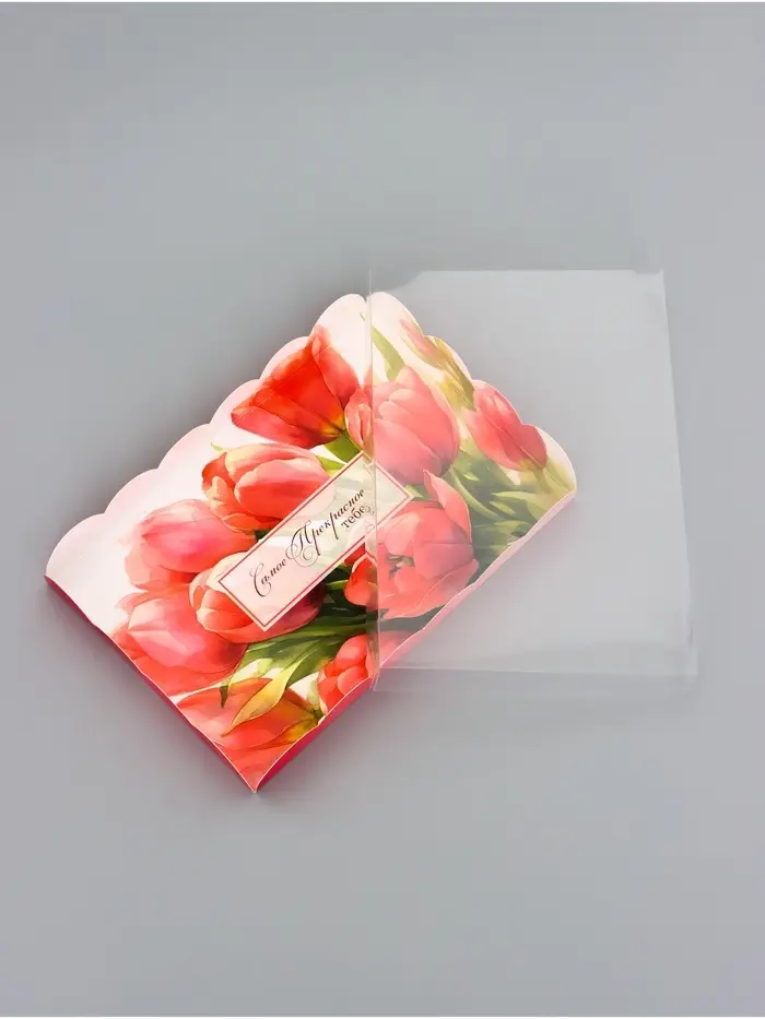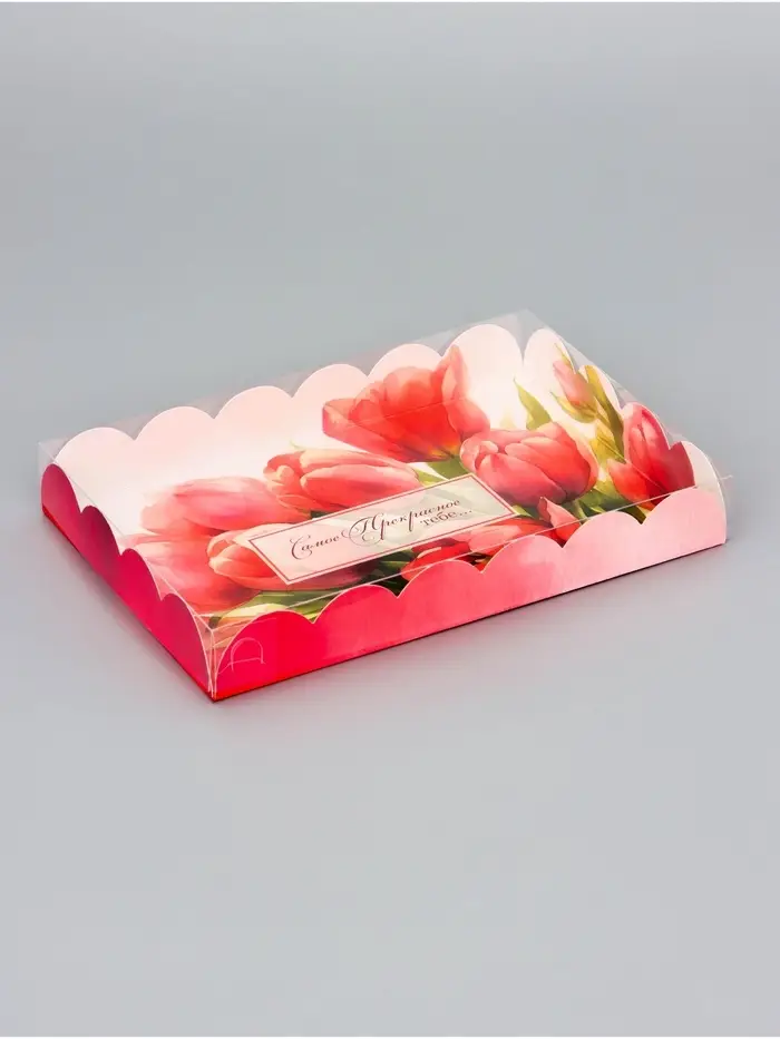 Коробка для печенья, кондитерская упаковка с PVC крышкой, «8 марта», 21 х 21 х 3 см
