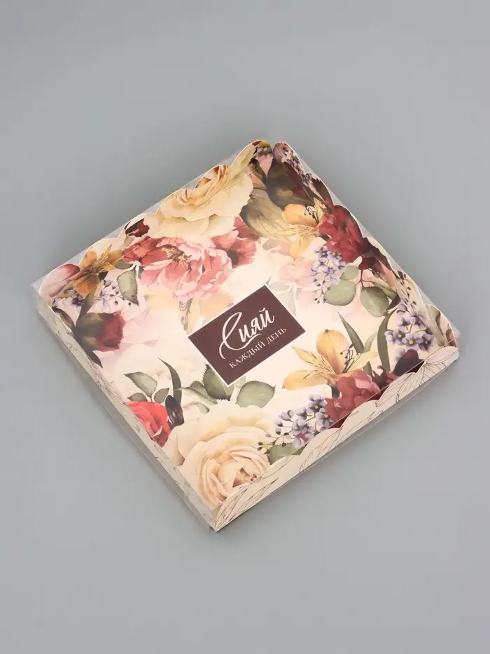 Коробка для печенья, кондитерская упаковка с PVC крышкой, «8 марта», 21 х 21 х 3 см