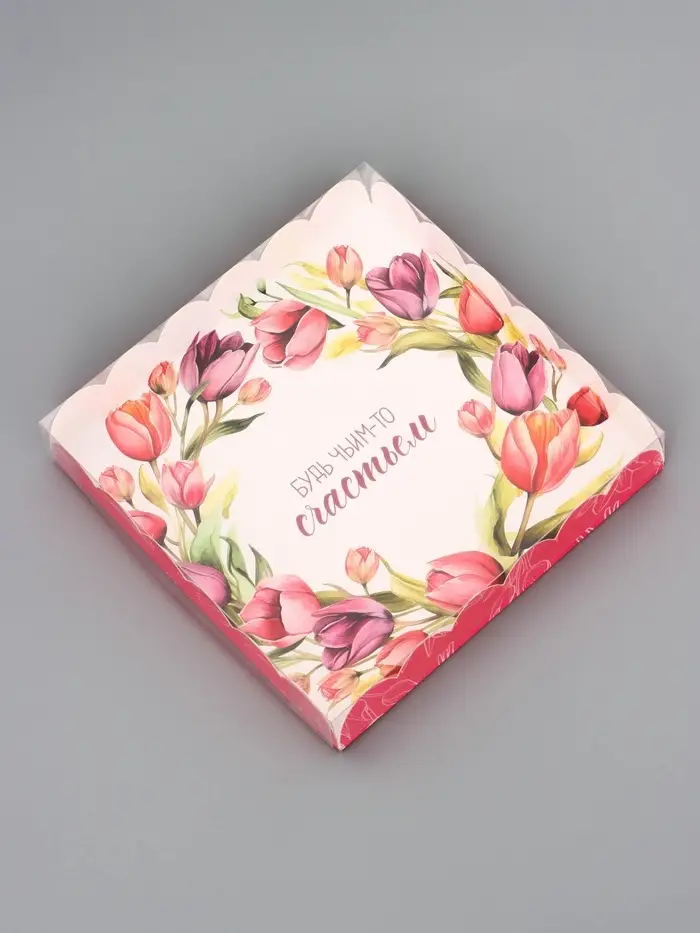 Коробка для печенья, «Тюльпаны», 18×18×3 см