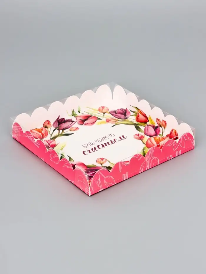 Коробка для печенья, кондитерская упаковка с PVC крышкой, «8 марта», 21 х 21 х 3 см