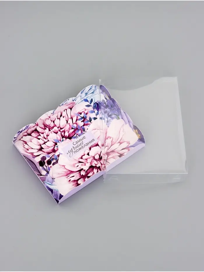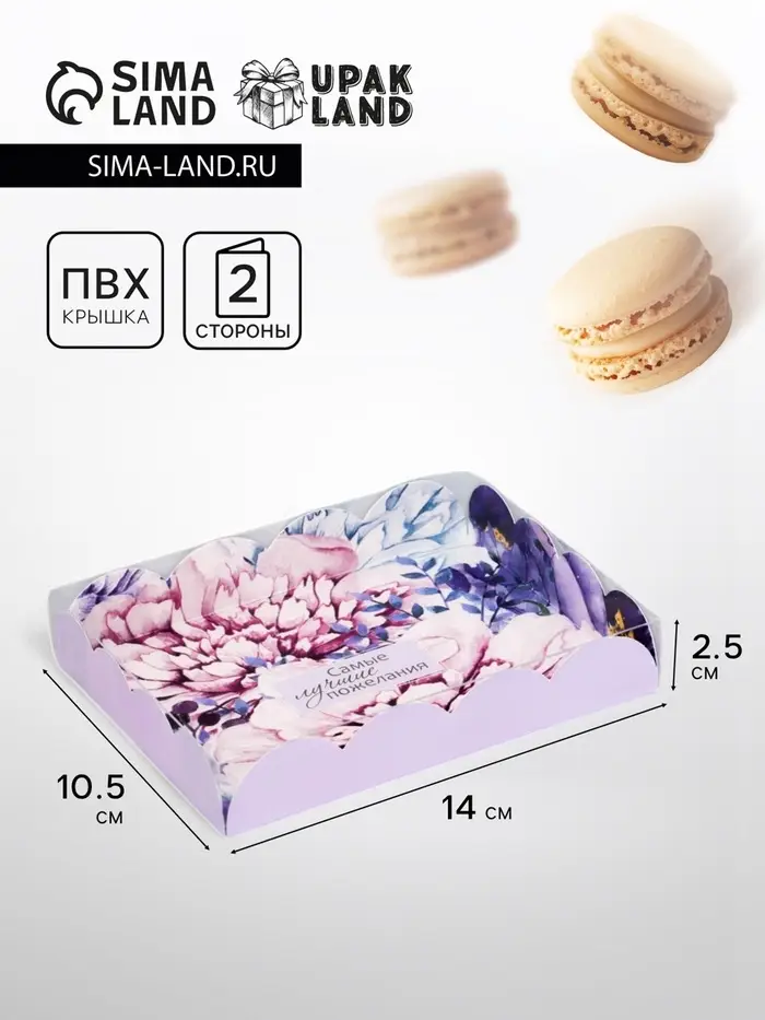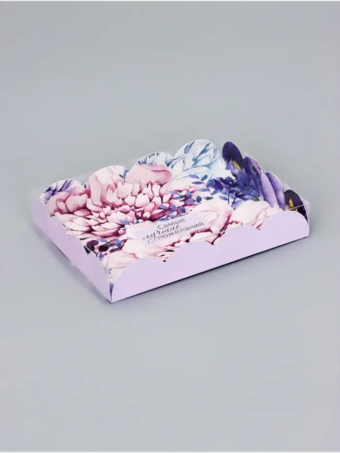 Прочный картон обеспечивает надежную защиту содержимого, а прозрачная крышка позволяет сразу оценить внешний вид угощений без необходимости открывать коробку.