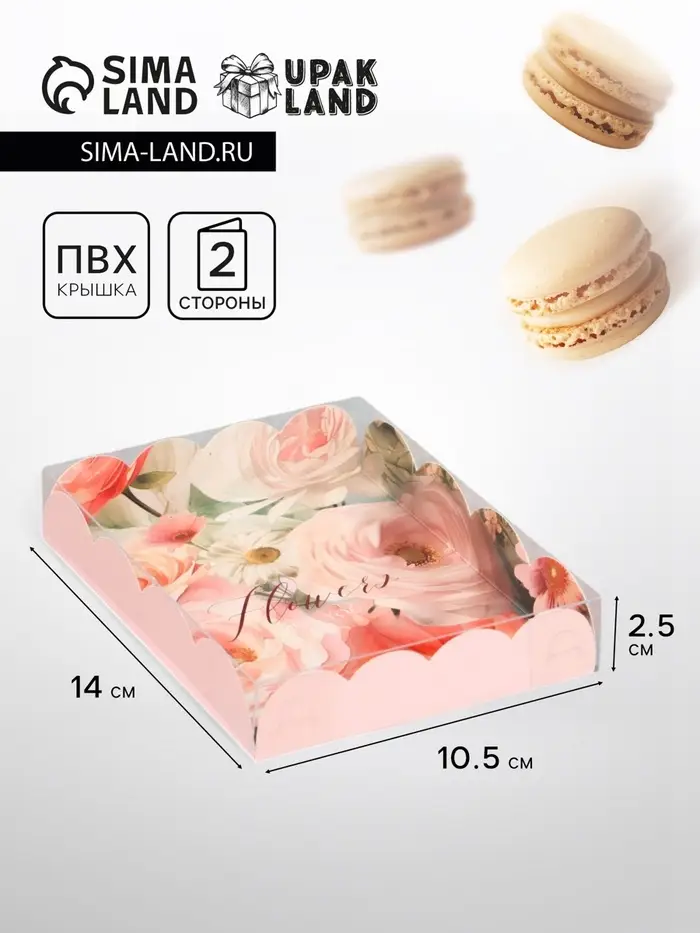 Прочный картон обеспечивает надежную защиту содержимого, а прозрачная крышка позволяет сразу оценить внешний вид угощений без необходимости открывать коробку.