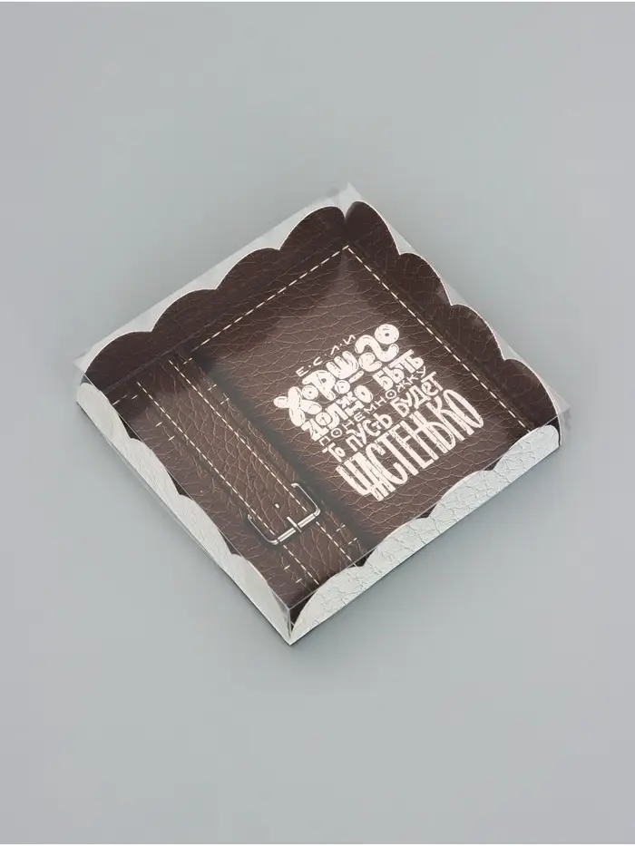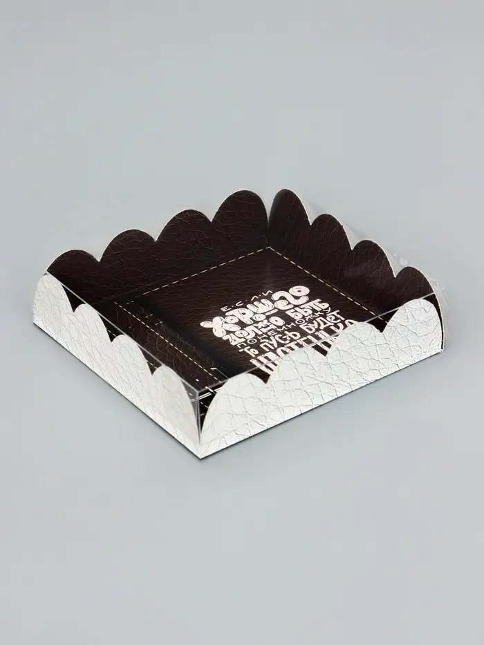 Прочный картон обеспечивает надежную защиту содержимого, а прозрачная крышка позволяет сразу оценить внешний вид угощений без необходимости открывать коробку.