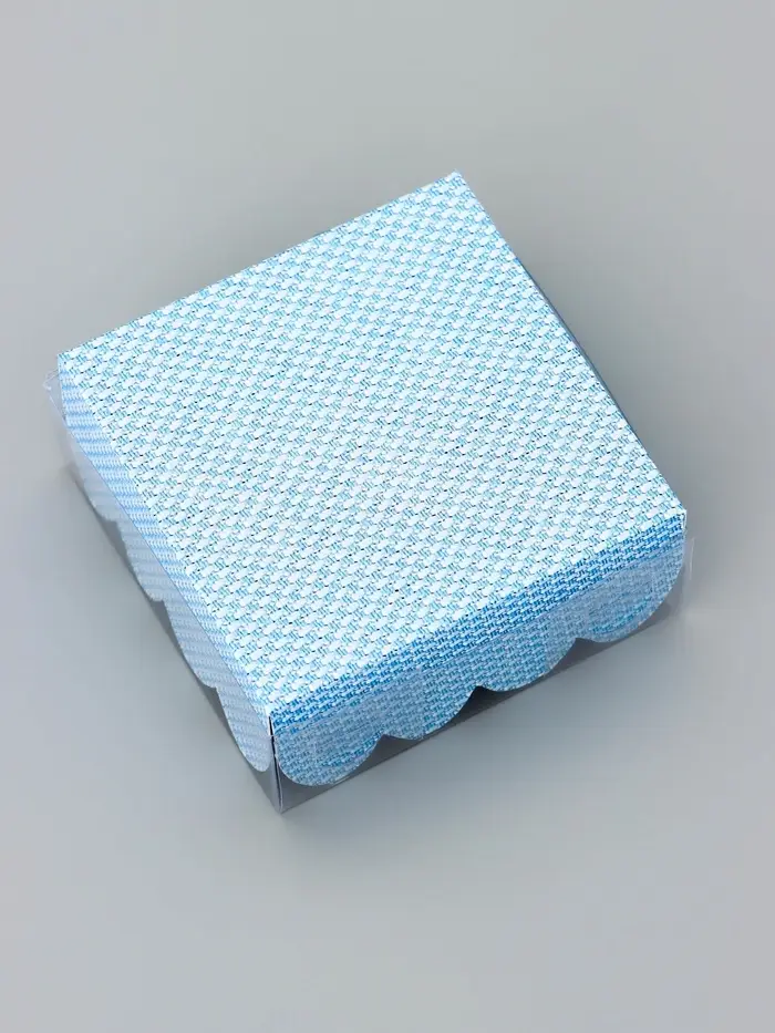 Прочный картон обеспечивает надежную защиту содержимого, а прозрачная крышка позволяет сразу оценить внешний вид угощений без необходимости открывать коробку.