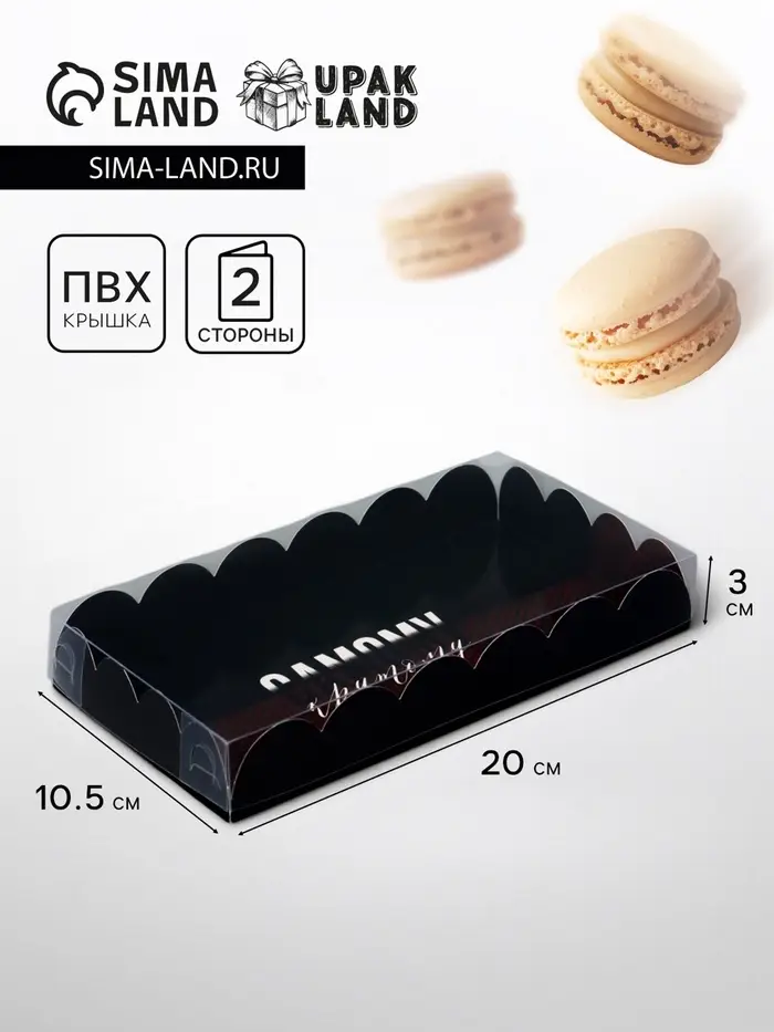 Прочный картон обеспечивает надежную защиту содержимого, а прозрачная крышка позволяет сразу оценить внешний вид угощений без необходимости открывать коробку.