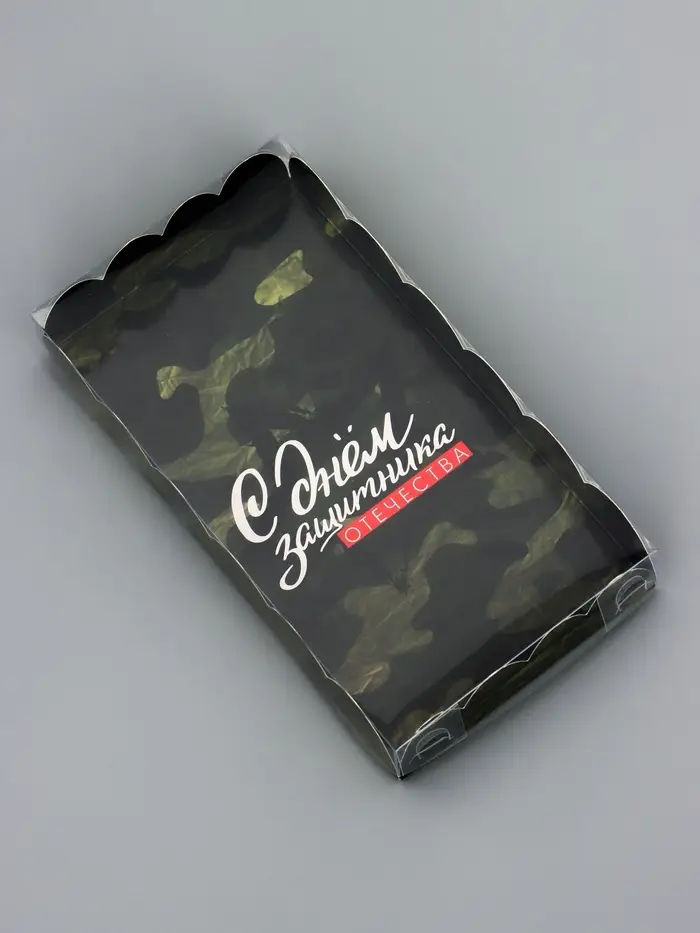 Коробка для печенья, кондитерская упаковка с PVC крышкой, «23 февраля», 21 х 21 х 3 см