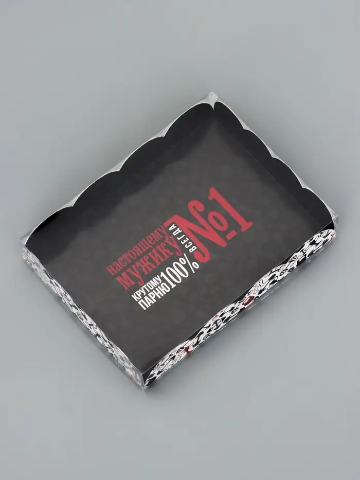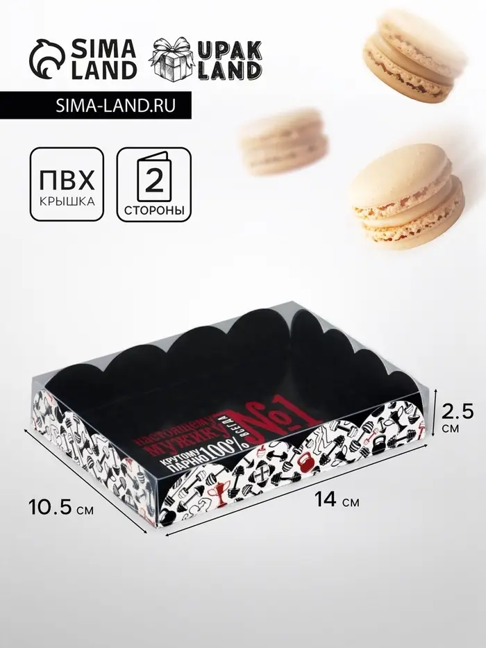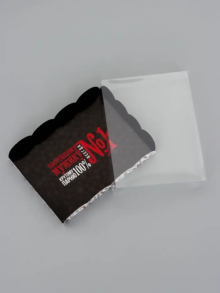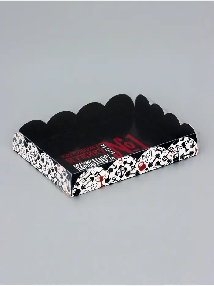 Прочный картон обеспечивает надежную защиту содержимого, а прозрачная крышка позволяет сразу оценить внешний вид угощений без необходимости открывать коробку.
